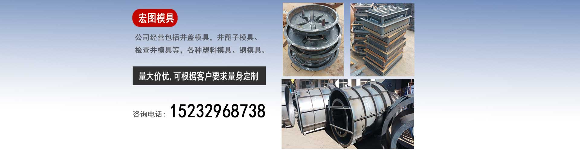 保定宏圖檢查井蓋模具廠是一家集設計、研發(fā)、生產、銷售為一體的企業(yè),我廠主要經營:水泥井蓋模具,預制井蓋塑料模具,下水井蓋鋼模具,雨水井篦子模具,排水井篦子塑料模具,污水井篦子鋼模具,混凝土檢查井模具,污水檢查井鋼模具等。我廠的賣的不僅僅是模具,更是一份保障,一份誠信,一份放心,我廠的銷售宗旨是"以誠信為本,做最好的模具,賣最便宜的價格"。保定宏圖檢查井蓋模具廠的模具產品銷往全國的30多個省市區(qū)及海外受到了廣大用戶的好評。